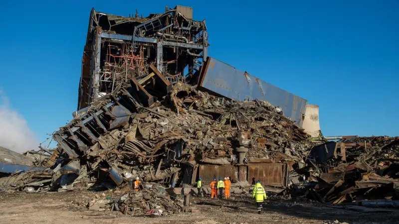 La planta de carbón en desuso de Didcot A estaba a punto de ser demolida cuando parte de su sala de calderas se derrumbó el 23 de febrero de 2016.